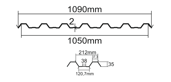 Tablă profilată trapizoidală H35 se execută din rulou de tablă din oțel, zincată, prevopsită, pe ambele părți, din tablă de aluminiu zinc și tablă din oțel zincată nevopsită.